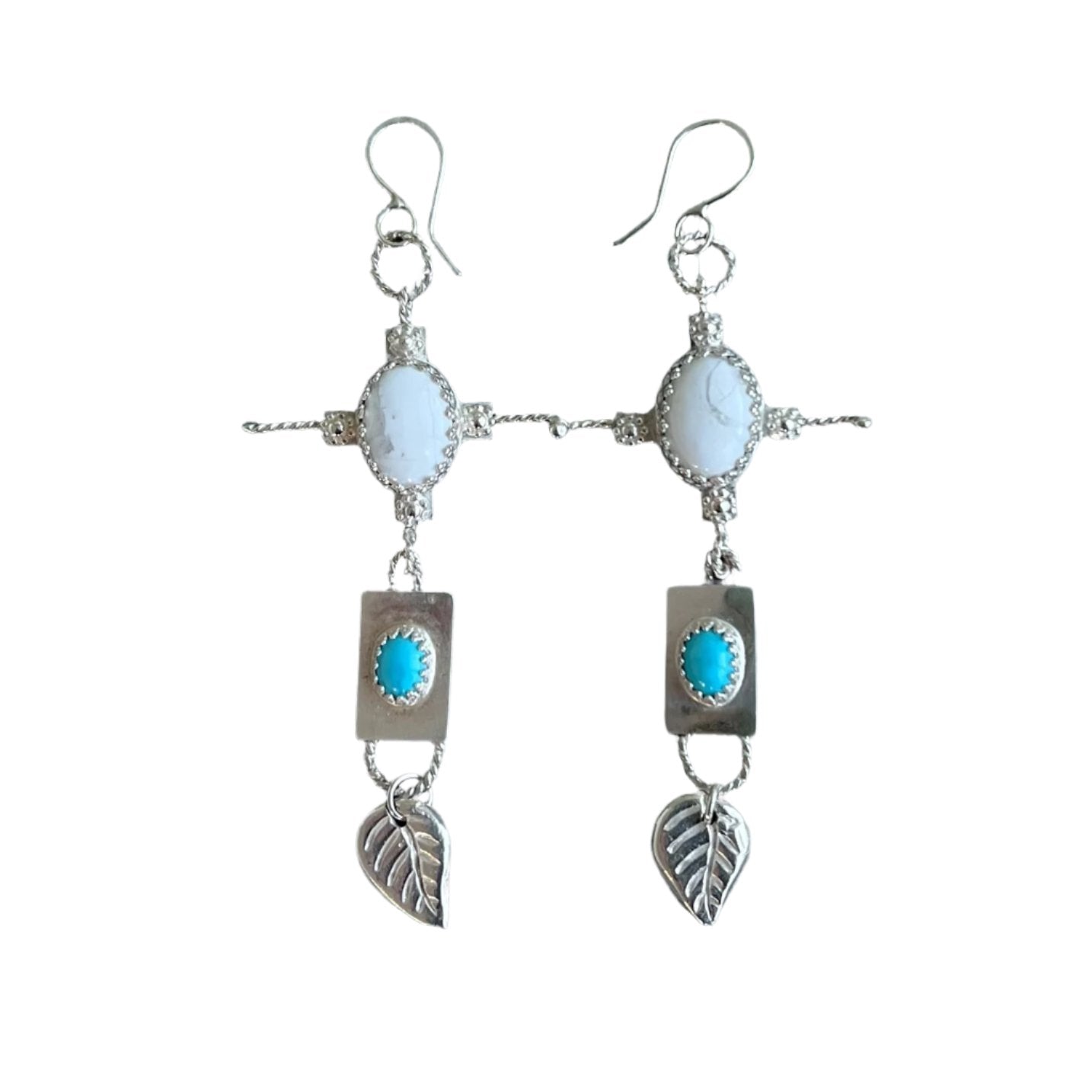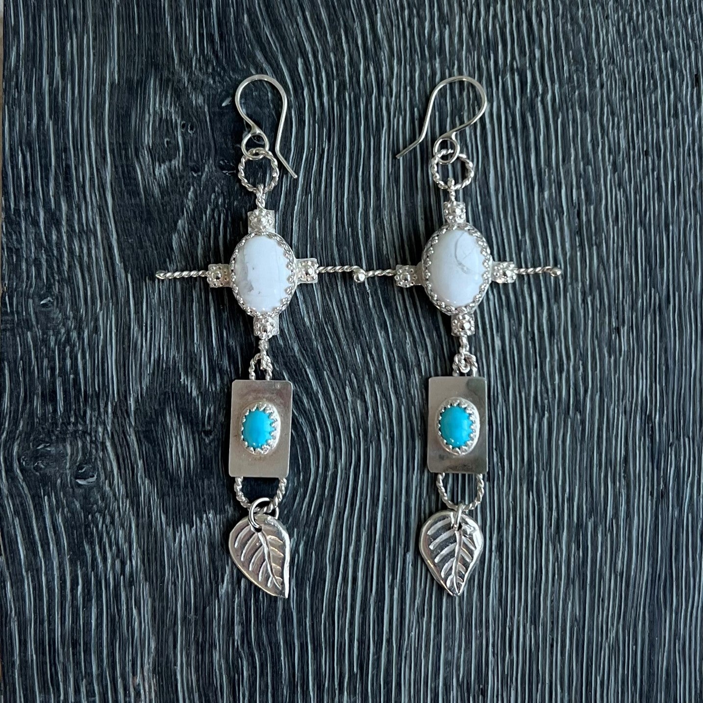 Howlite and Turquoise Earrings in Sterling Silver and Fine Silver